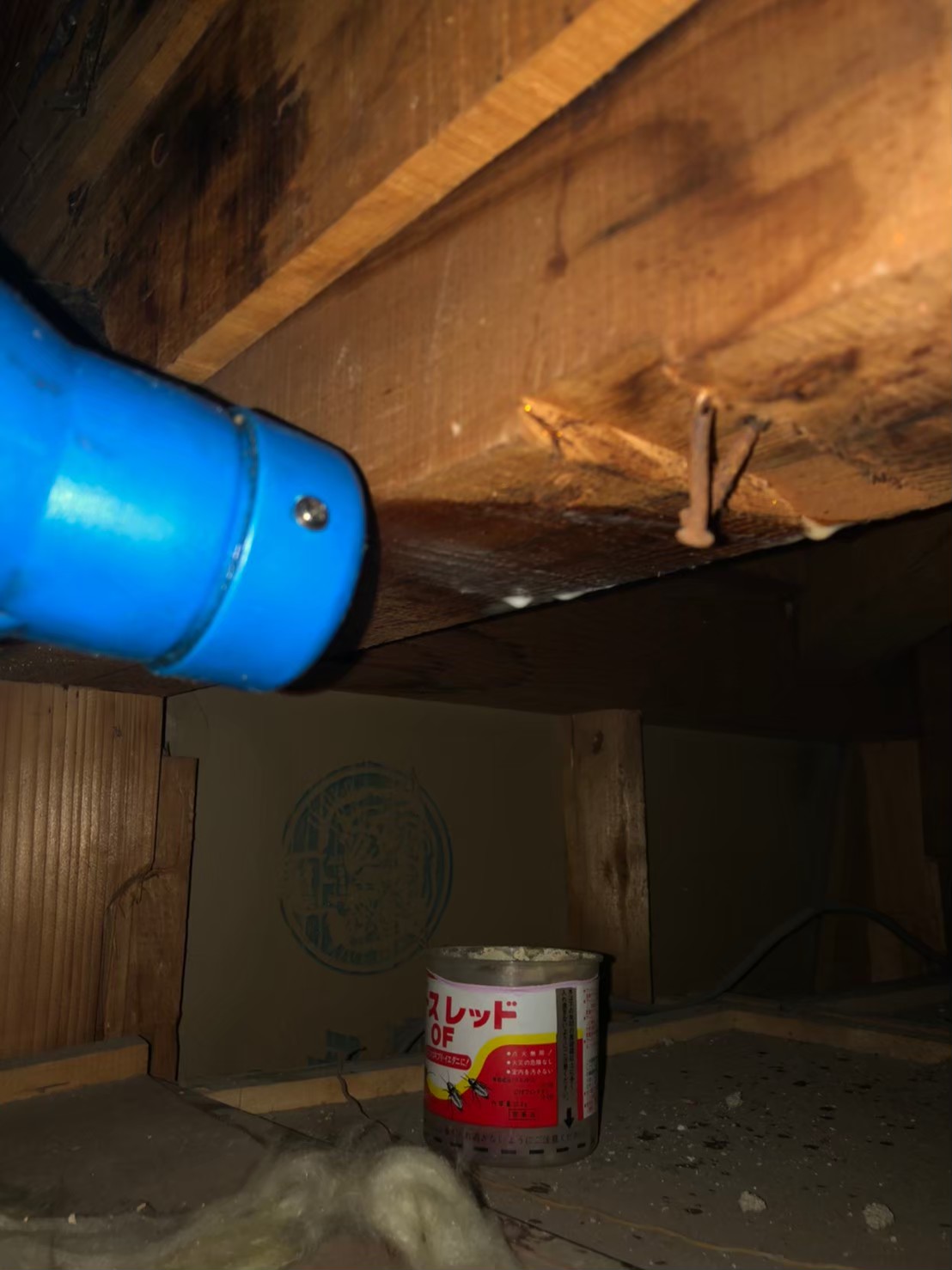 スタッフより - 今回の施工では、床上、床下、屋根裏など徹底調査を実施しました。