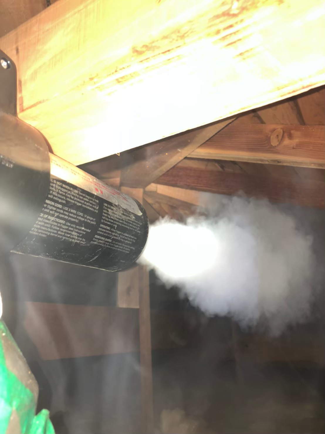 ウイルス消臭・除菌処理を実施いたしました。害獣の糞尿には病原菌やウイルスが含まれている可能性があり、特に小さなお子様やご高齢の方がいらっしゃるご家庭では徹底した衛生処理が不可欠です。さらに、マーキング臭を完全に除去するための消臭剤も設置し、快適な住環境を取り戻すことができました。