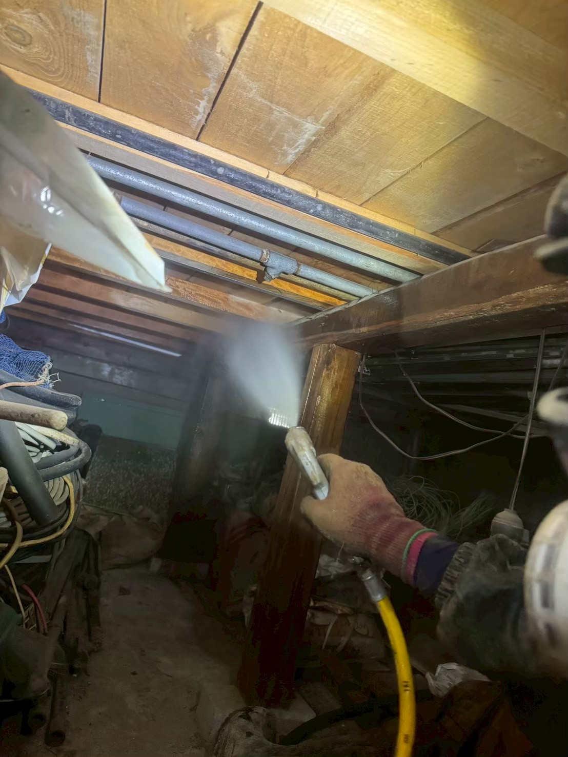 ●天井裏・床下の糞尿清掃と悪臭除去作業