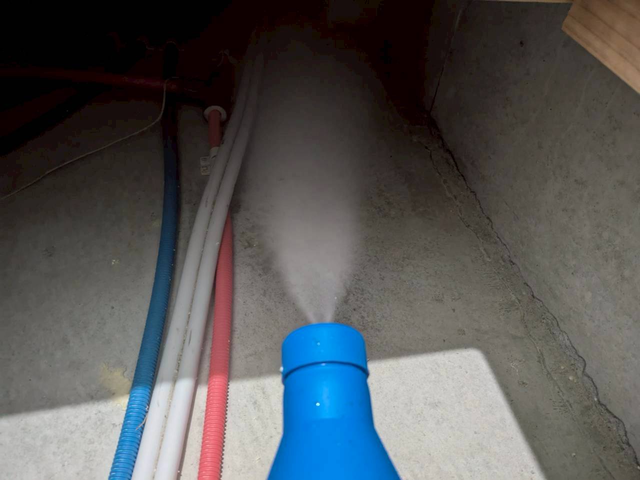 床下全域にシロアリ予防薬剤を散布し、建物基礎部分への防蟻処理も実施いたしました。