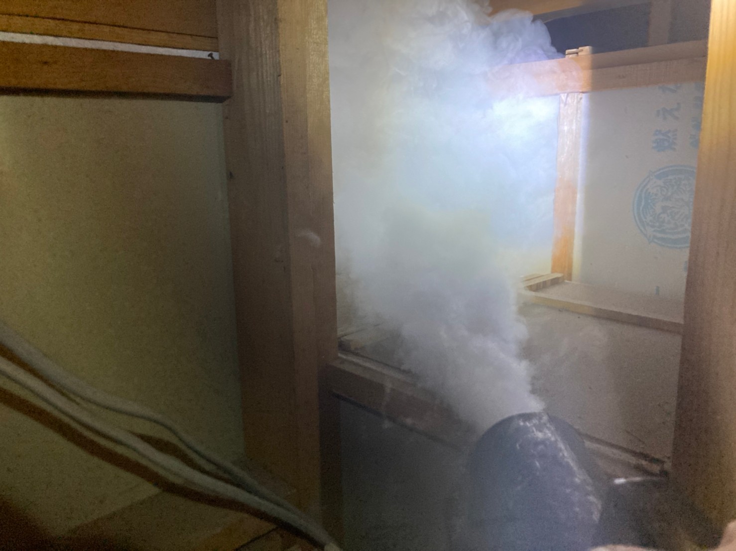 衛生面では、マーキング消臭剤を床下から1階天井まで全域に散布し、糞尿による悪臭を完全に除去いたしました。