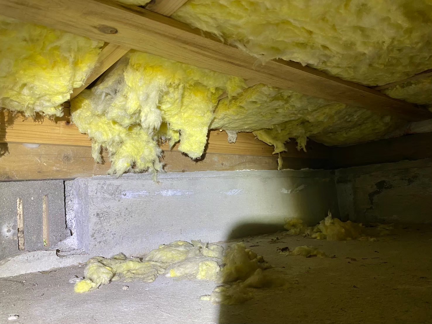 スタッフより - 今回の現場は、床下から2階天井裏まで広範囲にイタチの活動痕跡が確認されました。