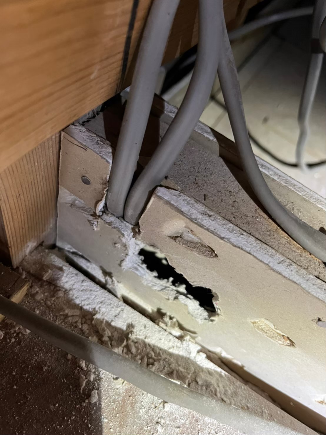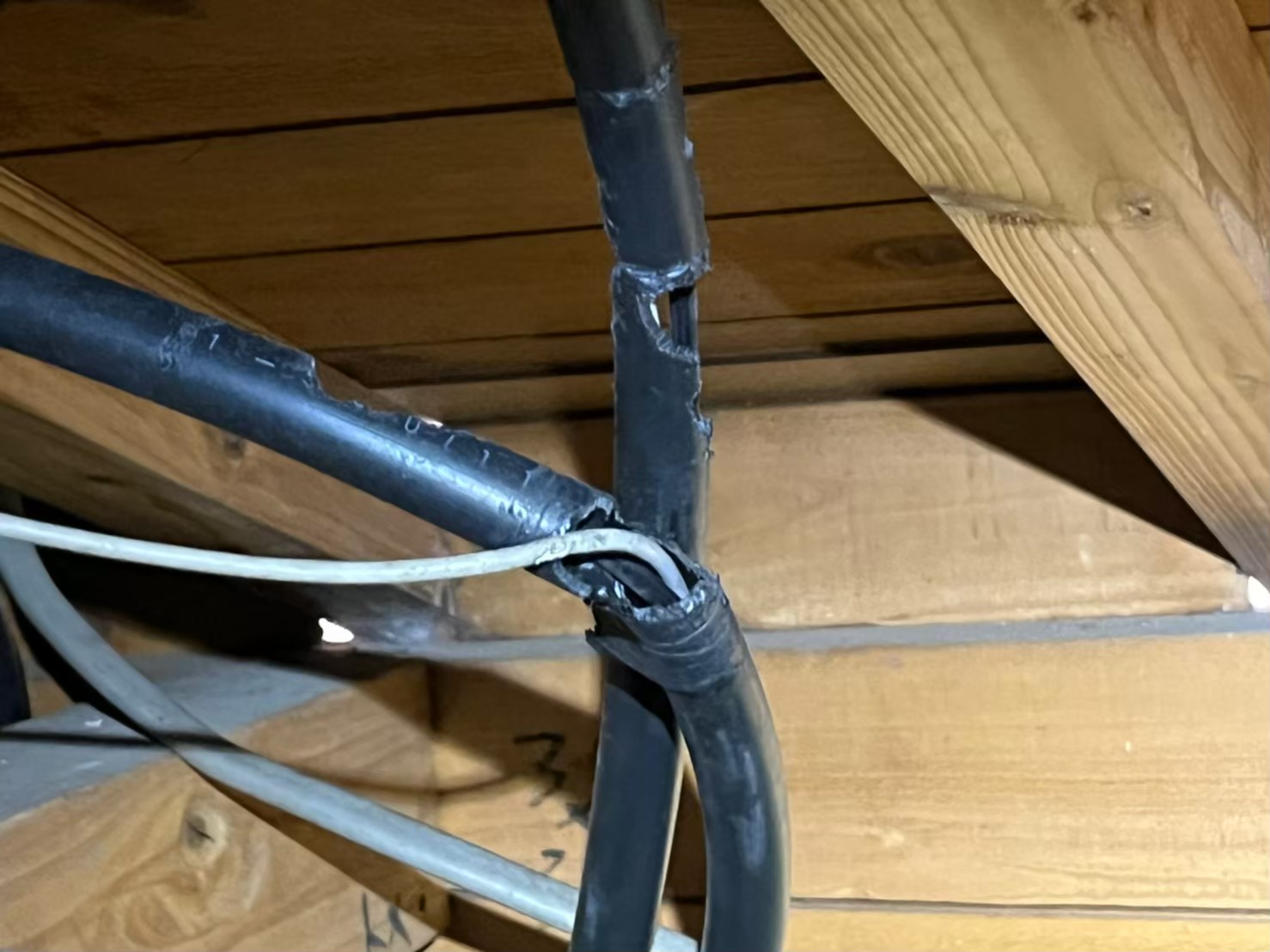 - 電気がつかなくなり電気屋さんに見てもらったところ、屋根裏の配線がかじられていると言われました。