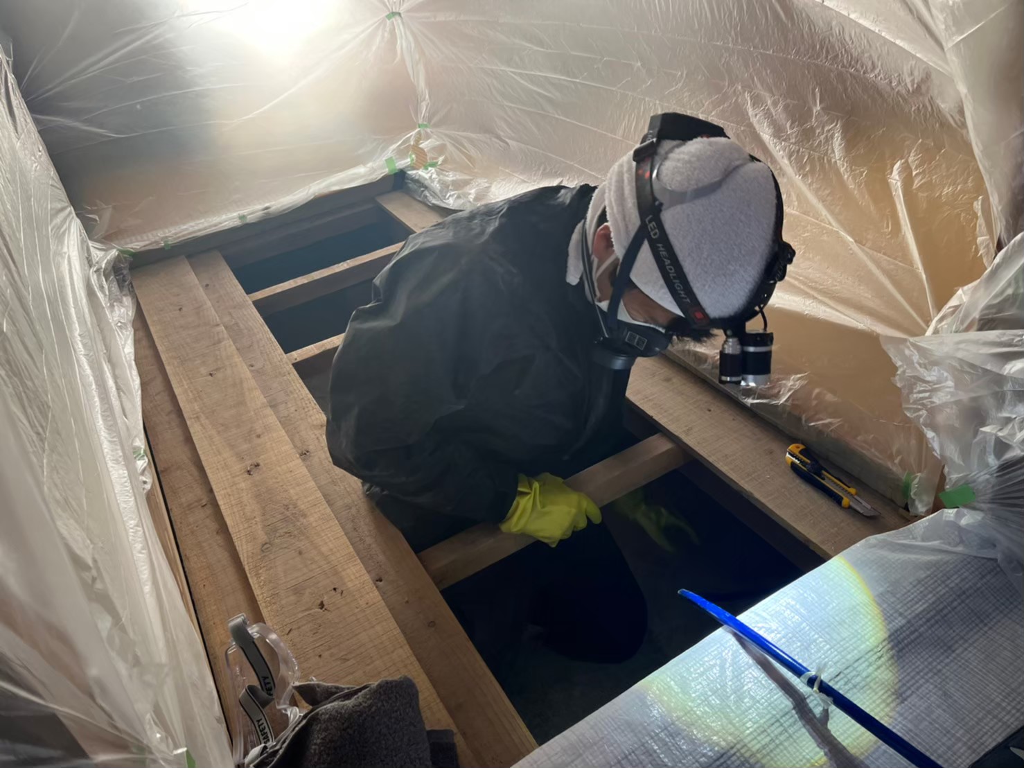 基礎部分の隙間や配管貫通部など複数の侵入経路を発見し、追い出し後、すべての侵入口を徹底的に封鎖いたしました。