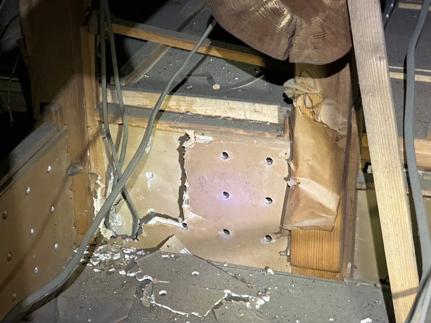 スタッフより - 今回の現場は床下から1階天井まで283㎡と広範囲に被害が及んでおり、屋根周りだけでなく基礎周りにも大きな隙間が確認されました。
