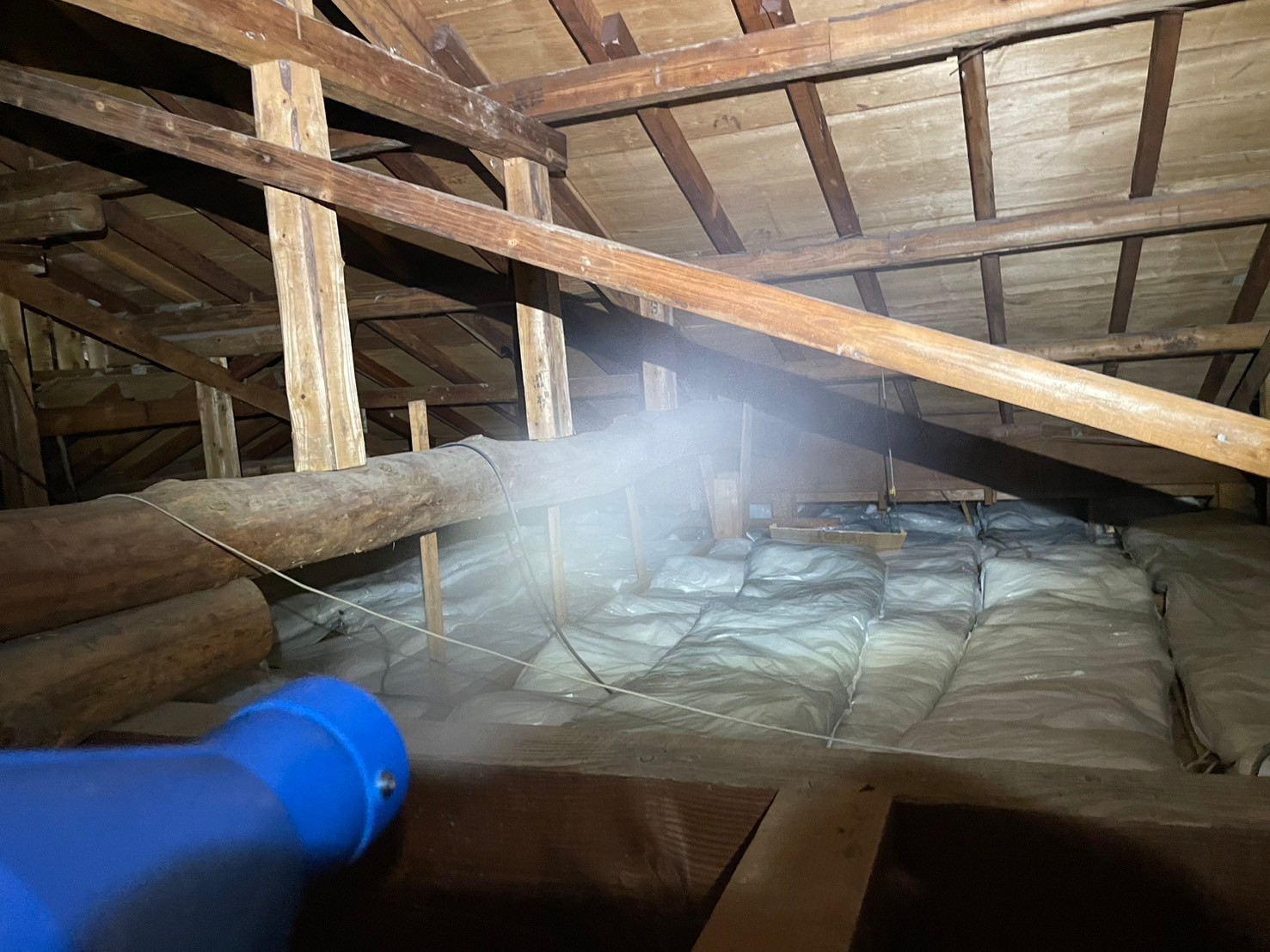 床下65㎡、1階天井裏70㎡、2階天井裏65㎡の合計200㎡を点検し、壁の開口工事も行って隅々まで確認・清掃いたしました。