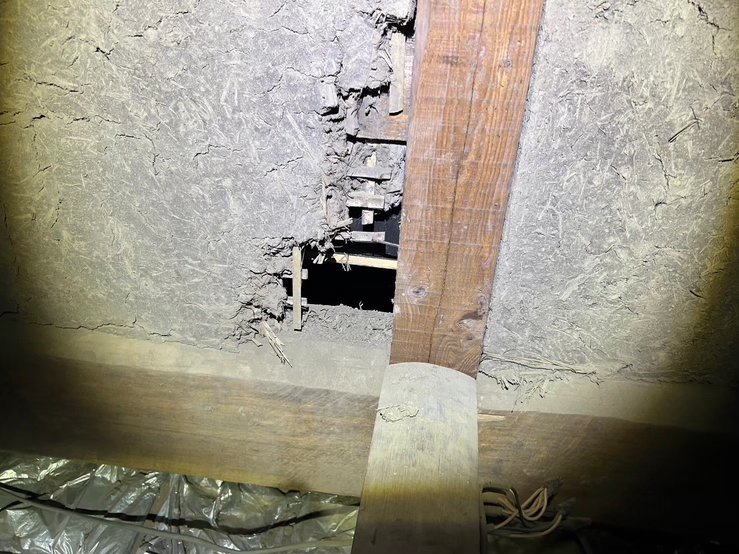 さらに断熱材がボロボロになっているのを屋根裏点検口から確認し、これは大きな動物が住み着いていると確信しました。