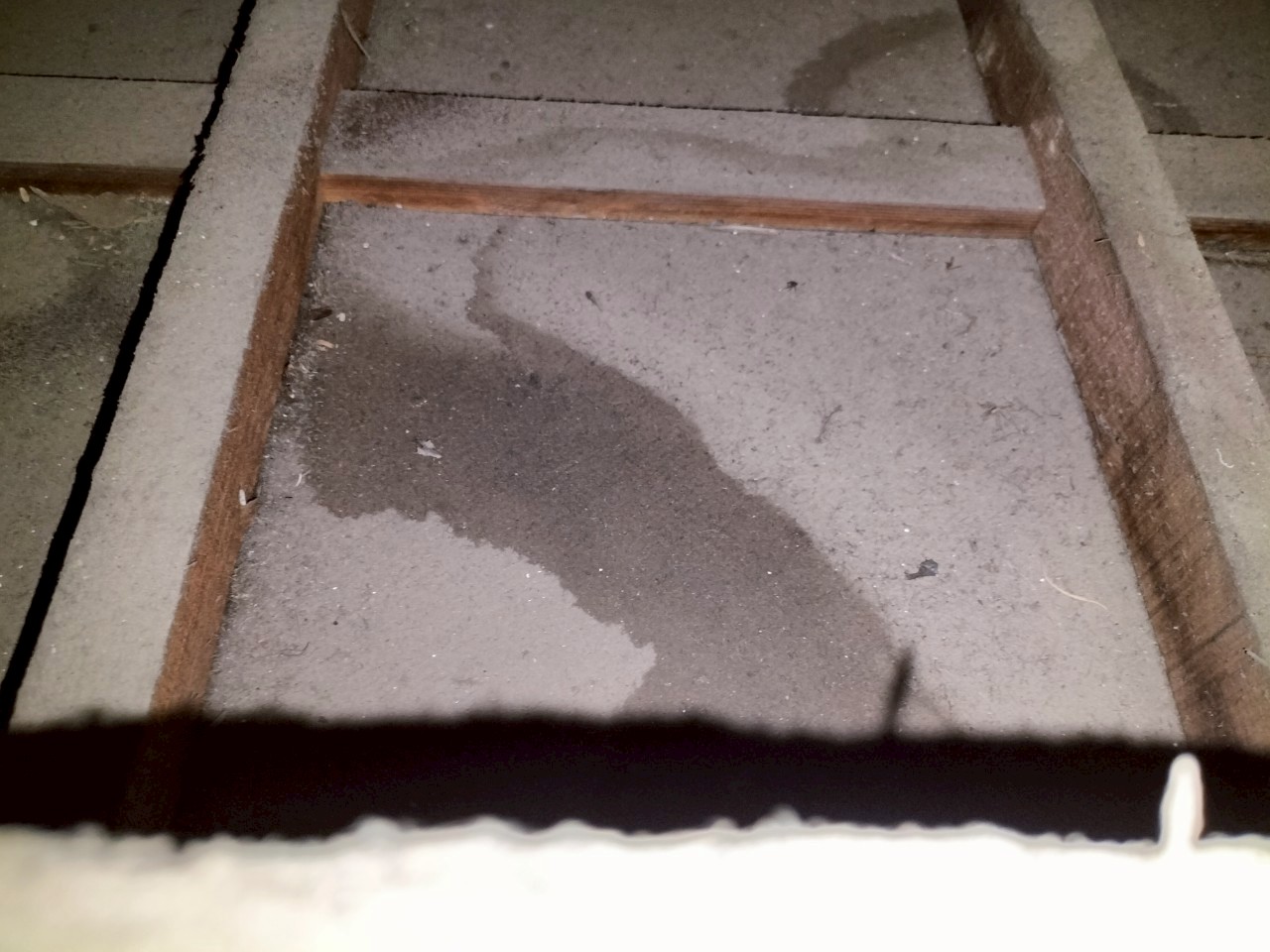 2階の寝室に強烈な獣臭が漂うようになり、天井を見上げると大きな茶色いシミが複数できていました。