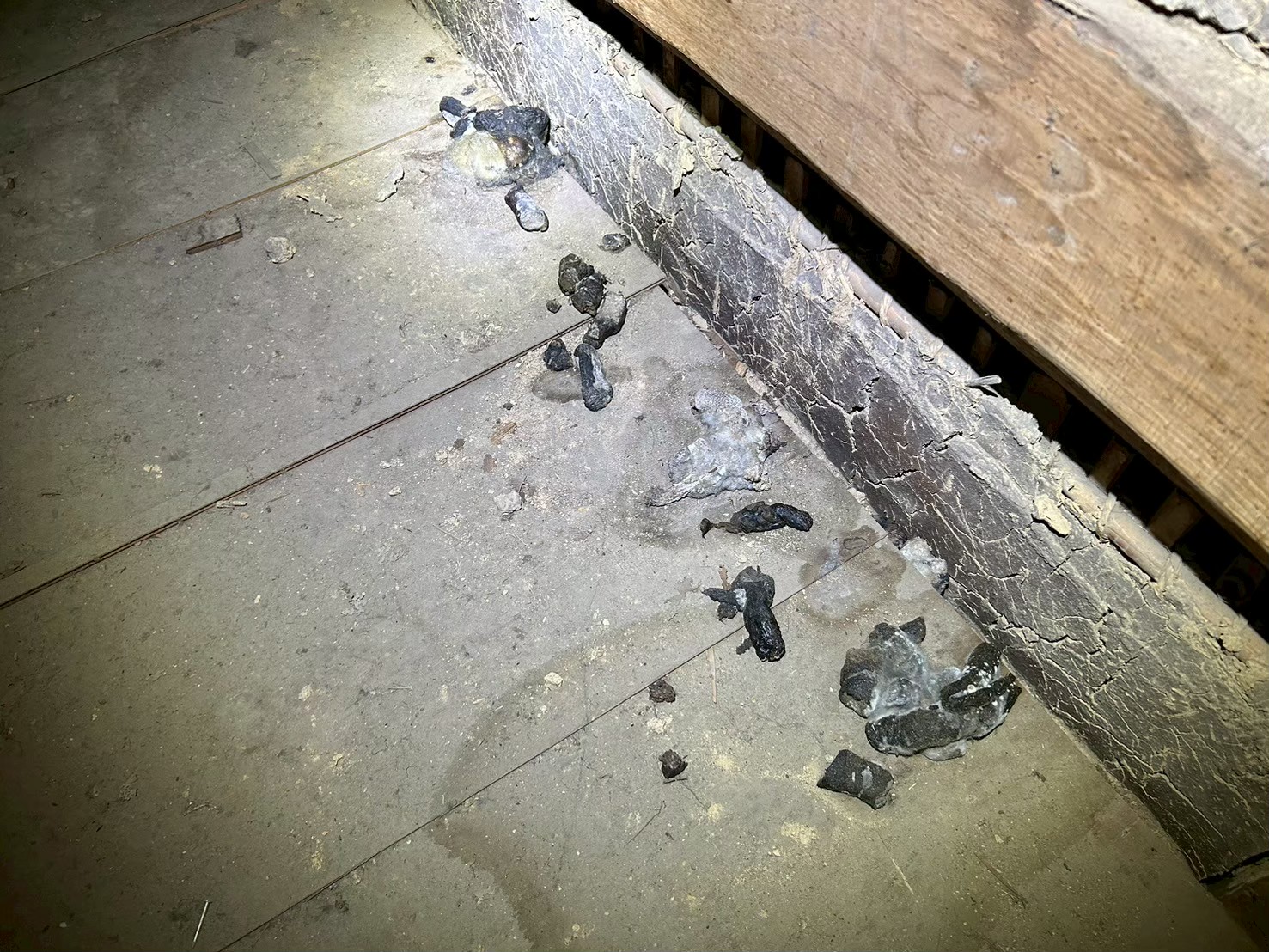 スタッフより - 床下から2階天井裏まで合計230㎡という非常に広範囲にアライグマの痕跡が確認されました。