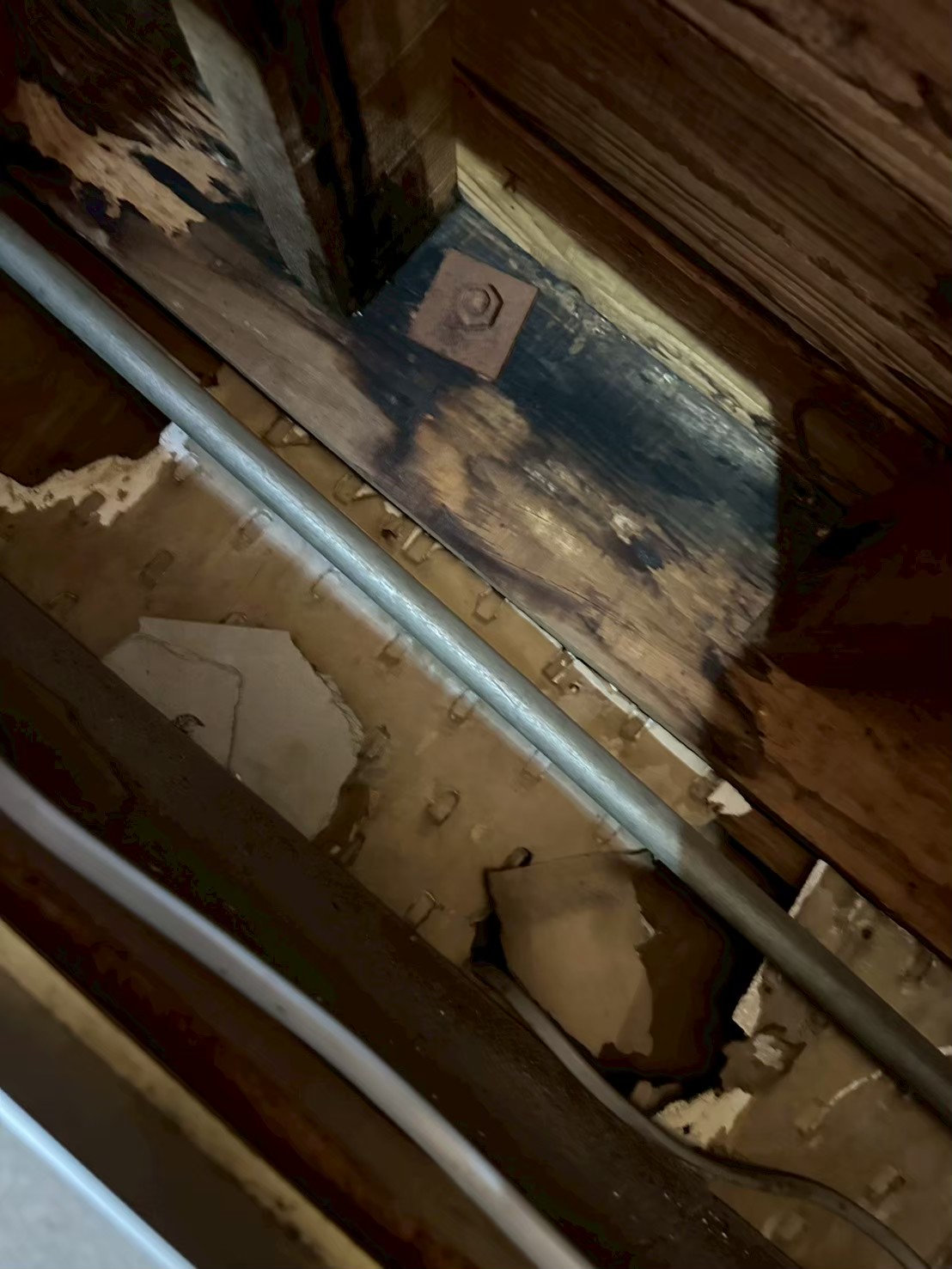 半年以上前から物音には気づいていたそうですが、天井のシミが急速に拡大し、天井板の劣化も目に見えて進んできたため緊急でお問い合わせいただきました。