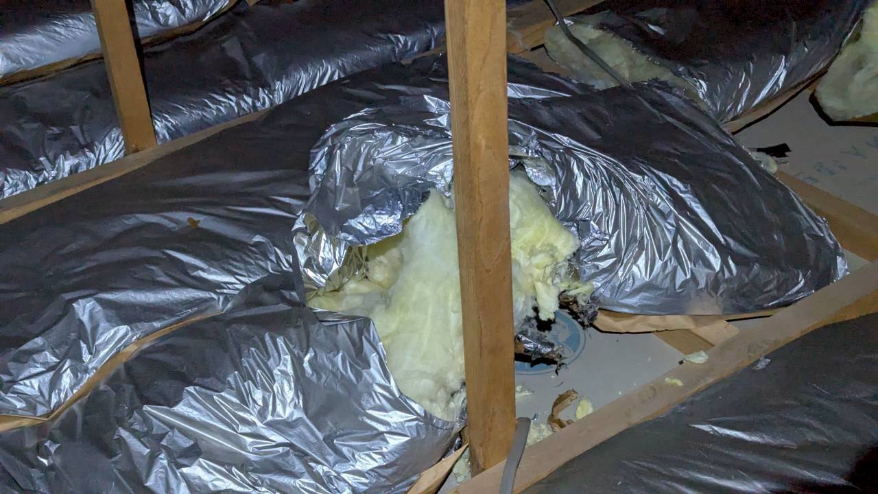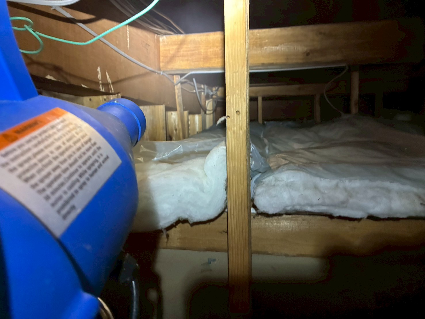スタッフより - 今回の現場は床下から2階天井裏まで191㎡にわたってイタチの被害が確認され、死骸回収と1階天井裏6㎡の断熱材入替えが必要な案件でした。