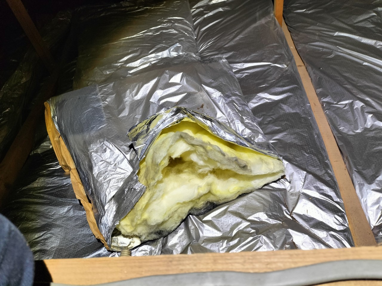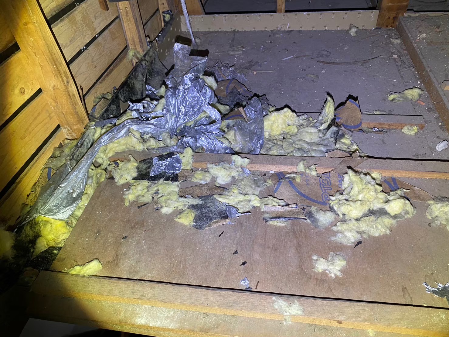 スタッフより - 224㎡に及ぶ広範囲のイタチ被害で、床下から2階天井裏まで全域に糞尿が確認されました。