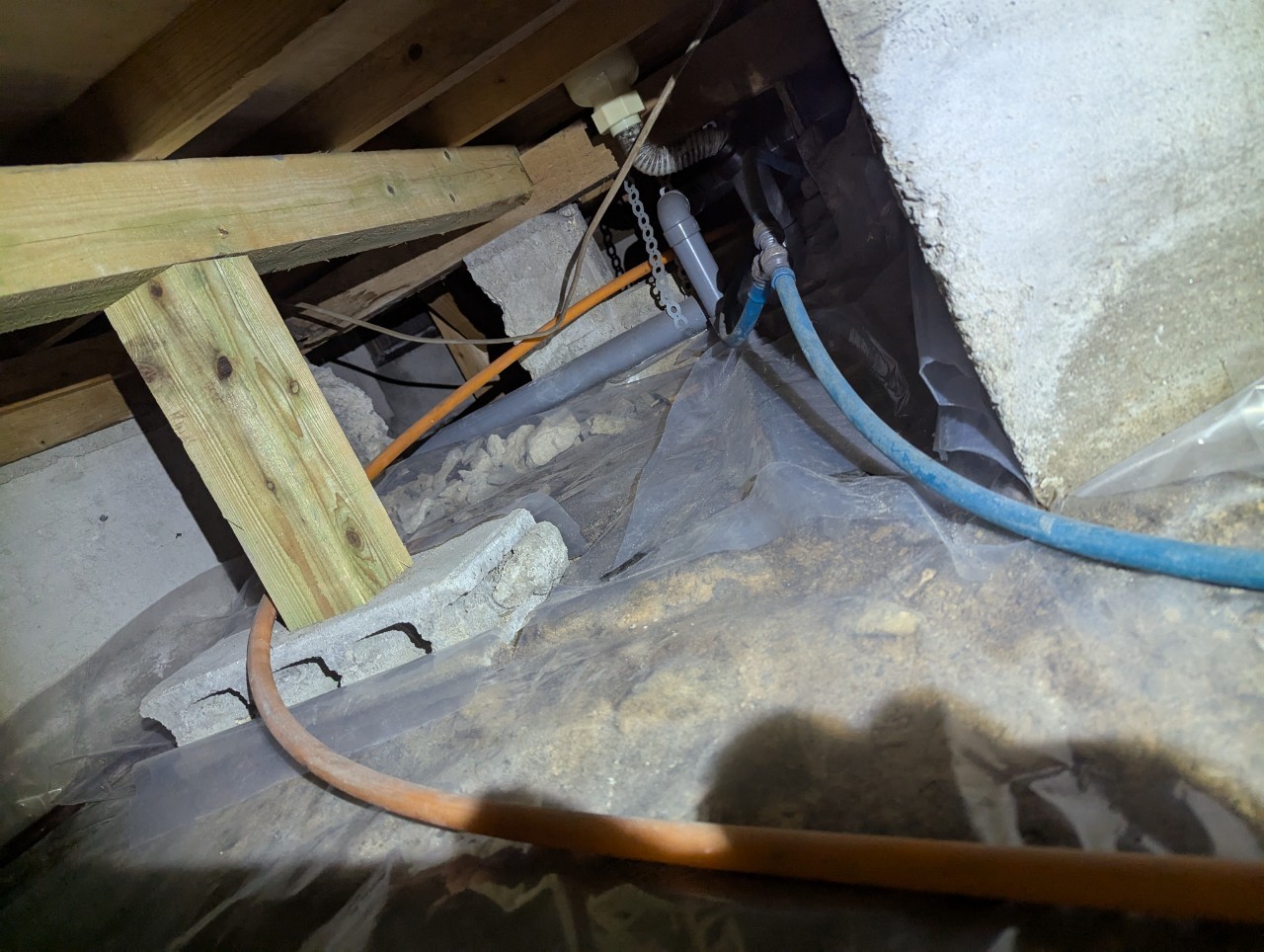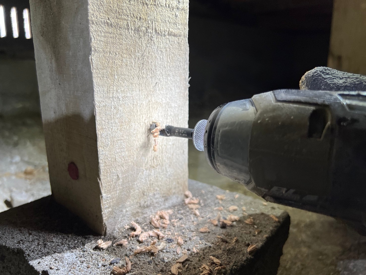 スタッフより - 床下でシロアリによる食害が確認され、イタチの侵入痕跡も同時に発見されました。
