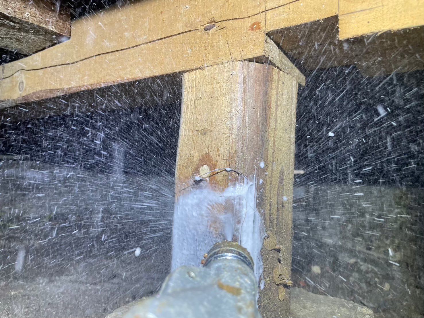 シロアリは湿気を好むため、防カビ剤と防腐剤を床下全域に散布し、土壌にもシロアリ予防剤を徹底散布しました。