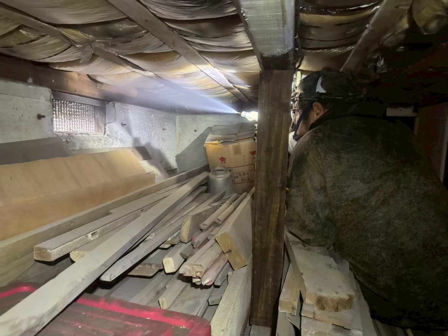 スタッフより - 床下でシロアリによる深刻な食害と蟻道が確認されました。