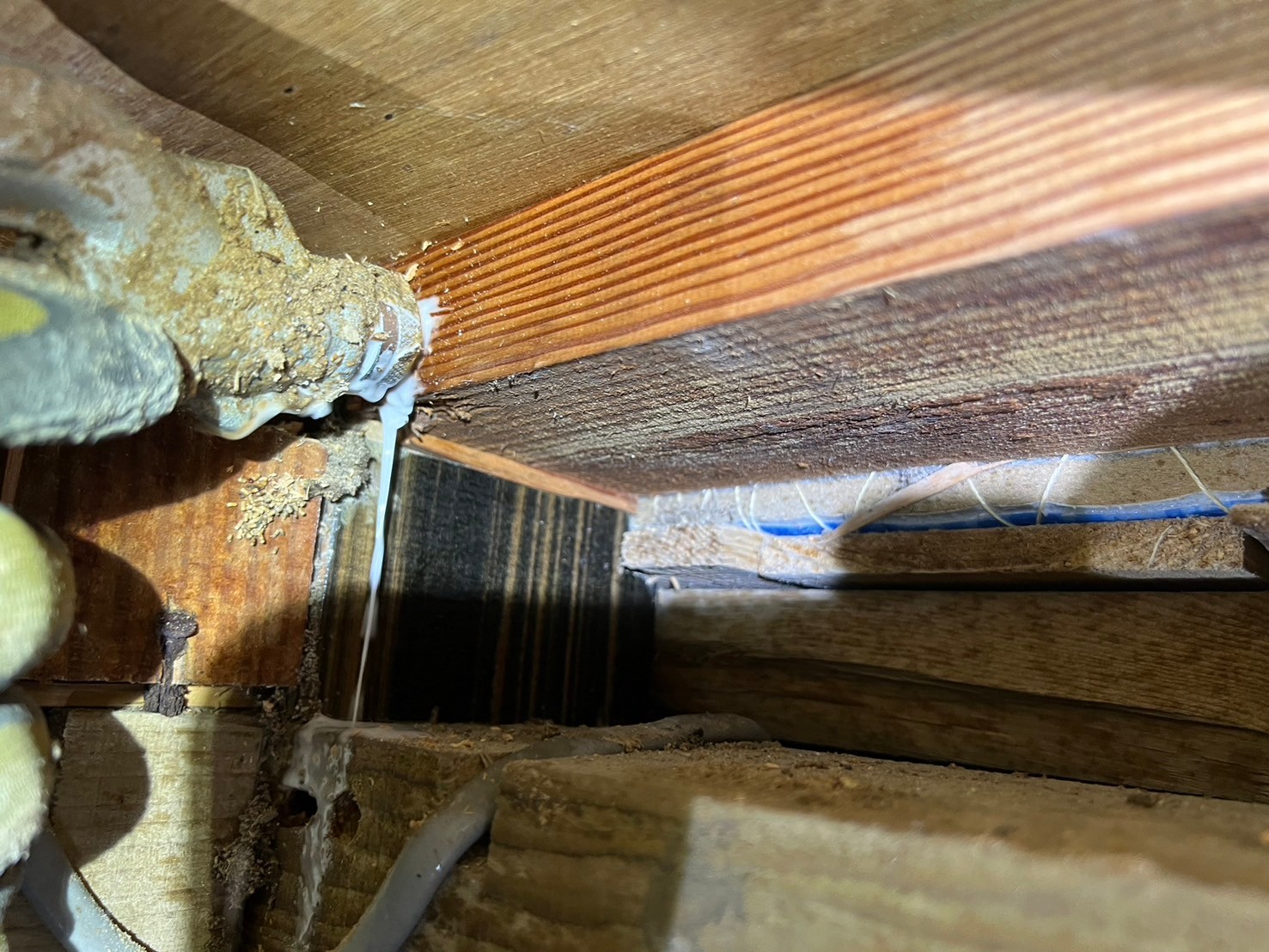 スタッフより - 床下でシロアリによる食害と複数の蟻道が確認されました。