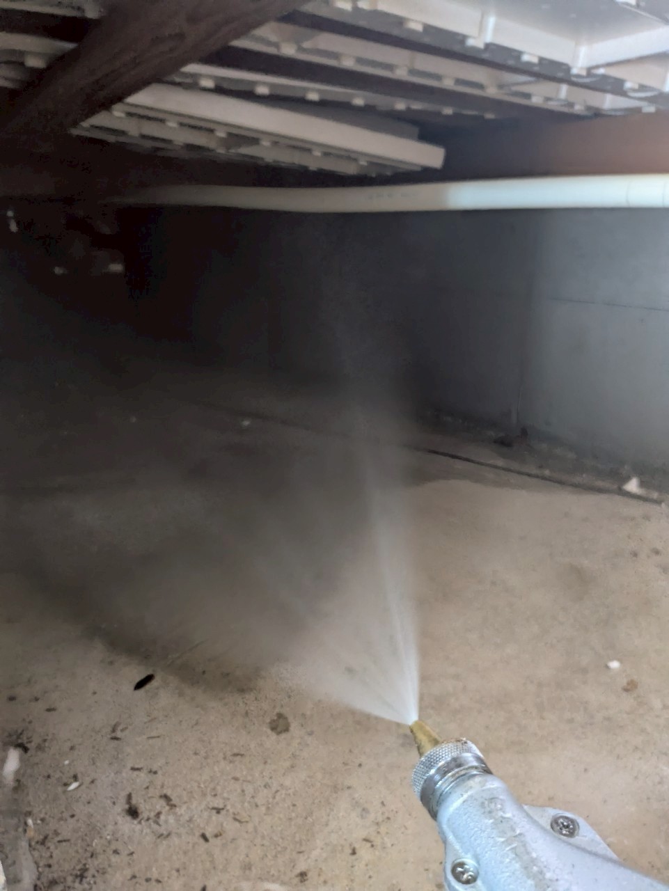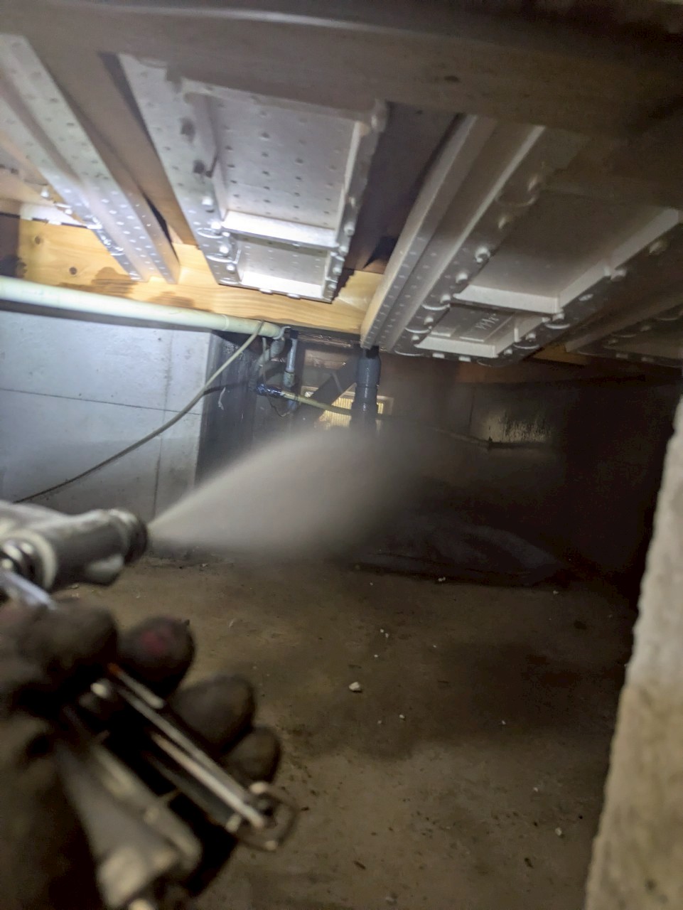 被害が進行した木材には穿孔注入で薬剤を深部まで浸透させ、床下全域に駆除剤・防カビ剤を徹底散布。電気配線の保護対策も施し、安全性を確保しました。