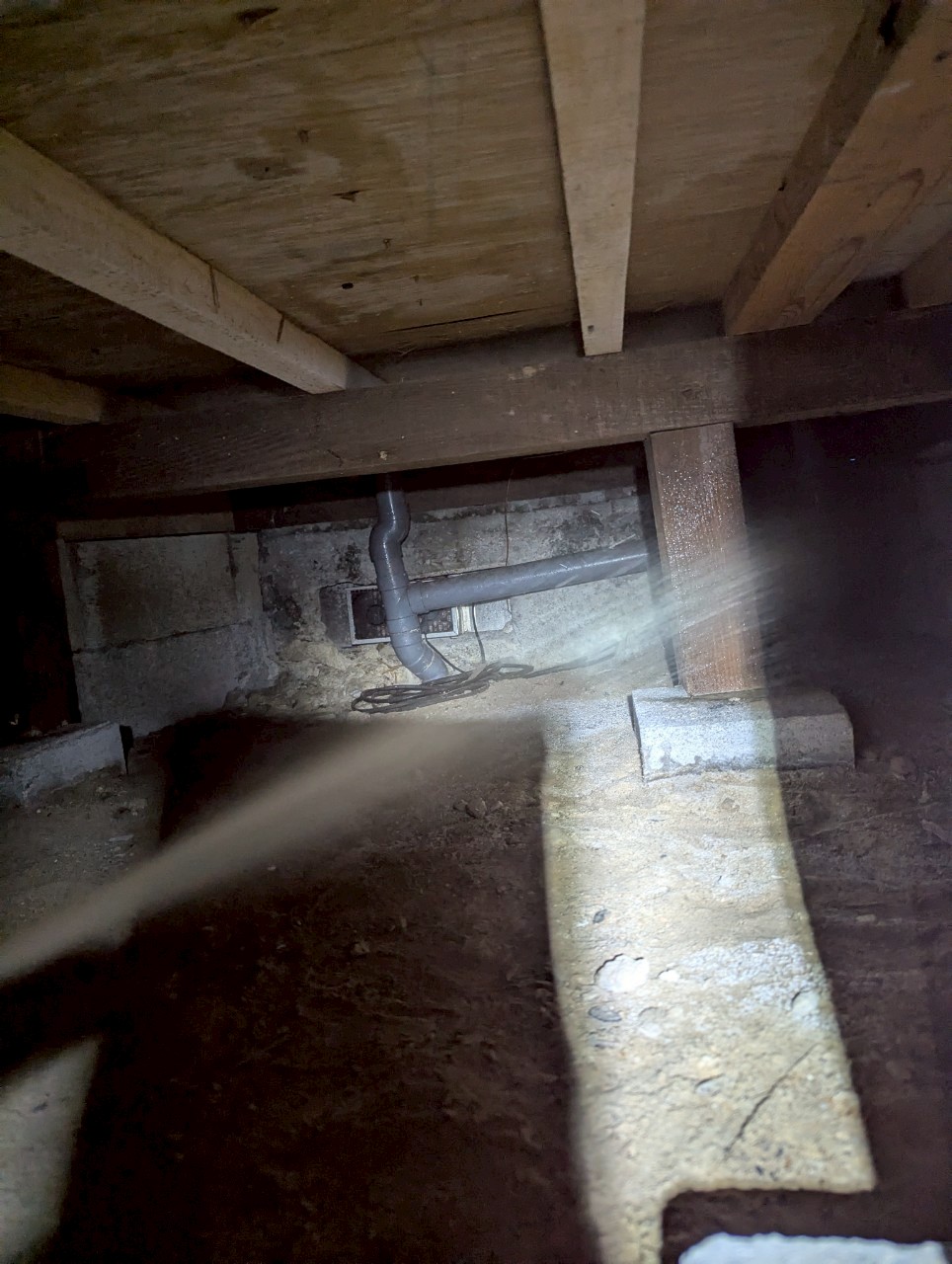 スタッフより - 床下調査で水回り周辺を中心に広範囲のシロアリ食害が確認されました。