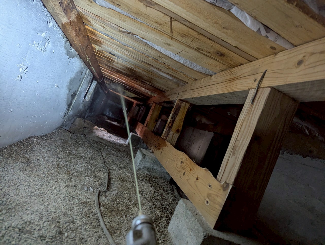 ご主人が床下点検口を開けてスマホで撮影したところ、木材に土の筋のようなものが写っており、慌てて調査を依頼。