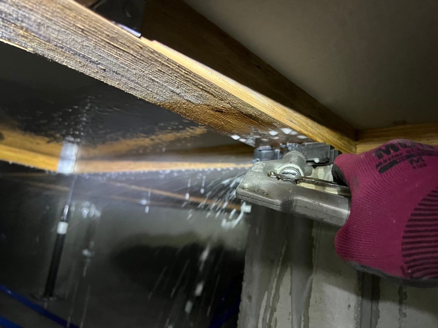 さらに板の隙間から茶色い土のような筋が伸びているのを発見し、不安になり調査を依頼されました。