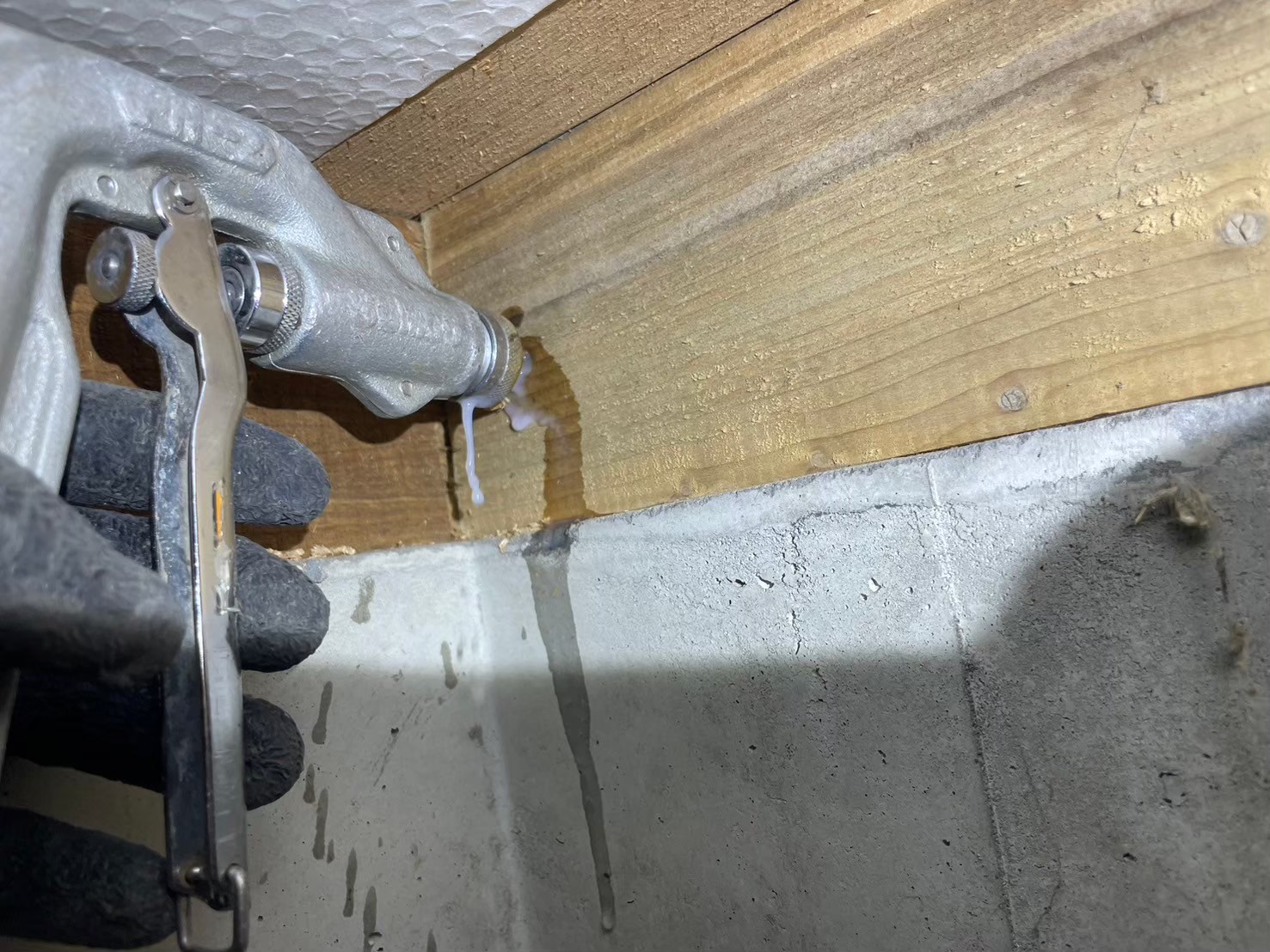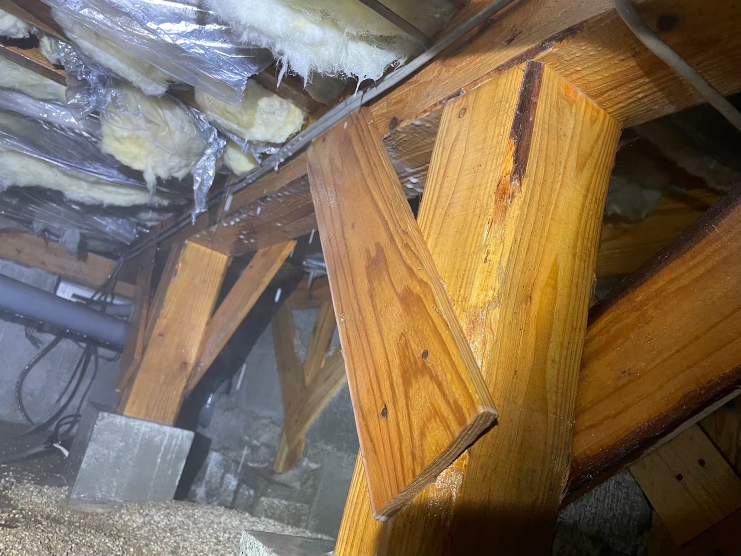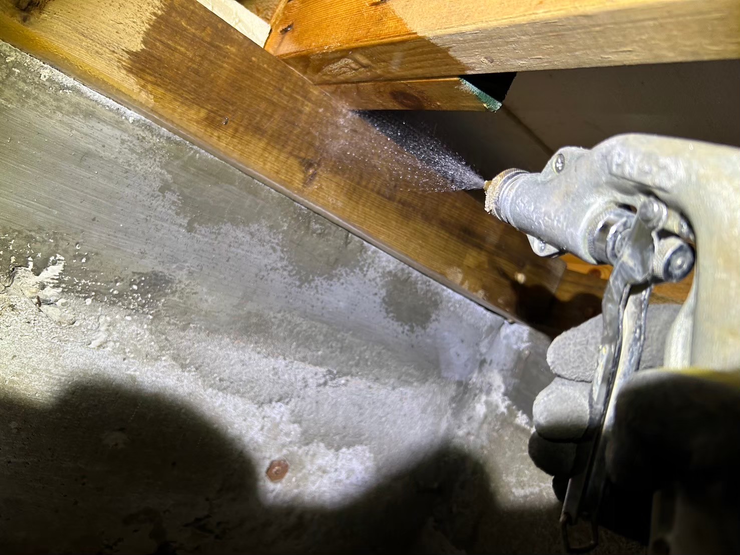 今回も水回りを中心に被害が広がっていました。床下全域に駆除剤を徹底散布し、被害が進んだ木材には穿孔注入処理で薬剤を深部まで届かせました。