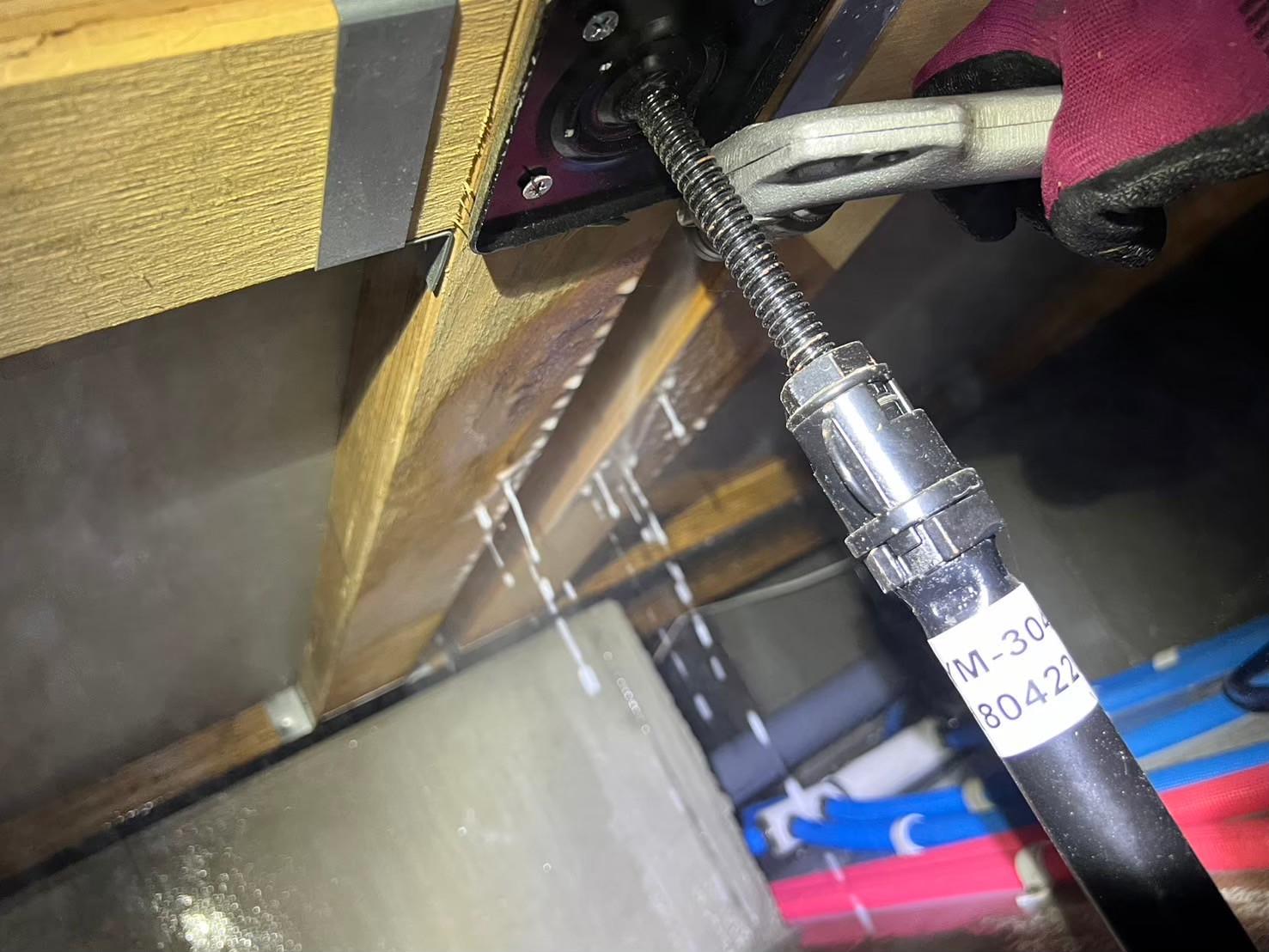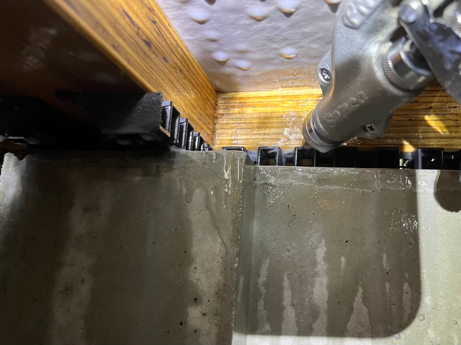 床下全域に駆除剤を徹底散布し、被害が進んだ木材には穿孔注入処理で薬剤を深部まで届かせました。