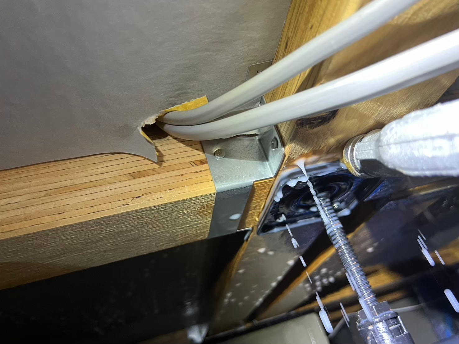 最初は気のせいかと思っていたそうですが、同じ場所で何度か同じ感覚があり、しゃがんで確認すると靴箱の下の巾木に小さな穴が空いていることを発見。