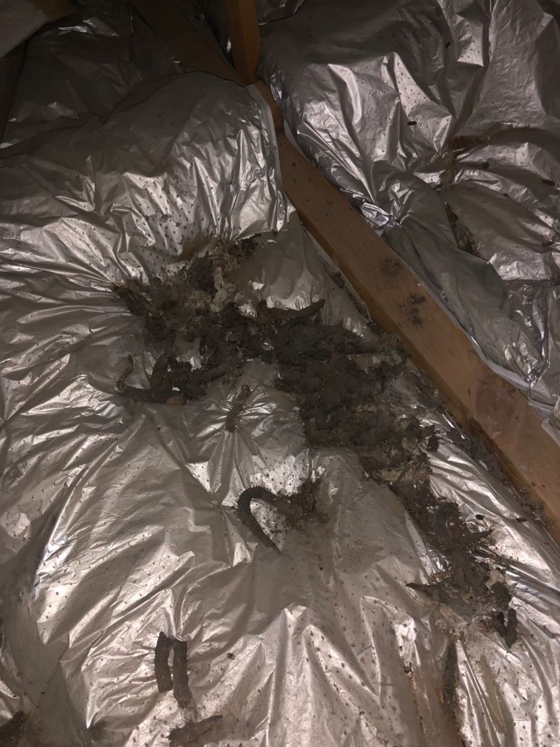- 夜になると天井裏から足音や物を引きずるような音が聞こえるとのご相談をいただきました。ご自宅の周囲に畑が多く、イタチが頻繁に目撃されていたとのことです。天井裏では断熱材が荒らされ、糞尿の臭いが強くなっており、家族の健康への影響も心配されていました。長期間続く被害で、早急な対応を希望されていました。