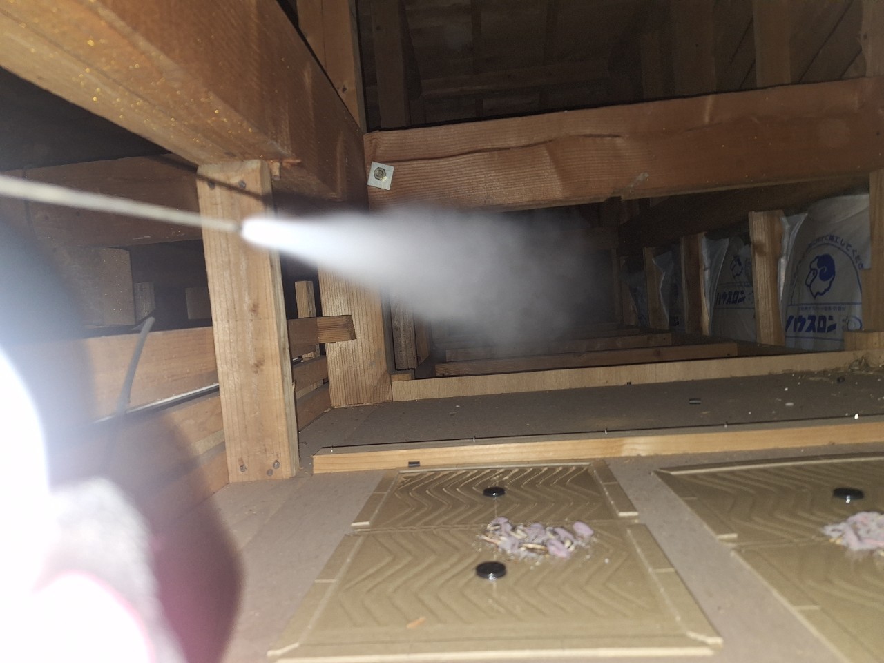 すべての侵入口を頑丈な素材で完全封鎖し、糞尿で汚染された箇所には除菌剤・消臭剤を徹底散布しました。