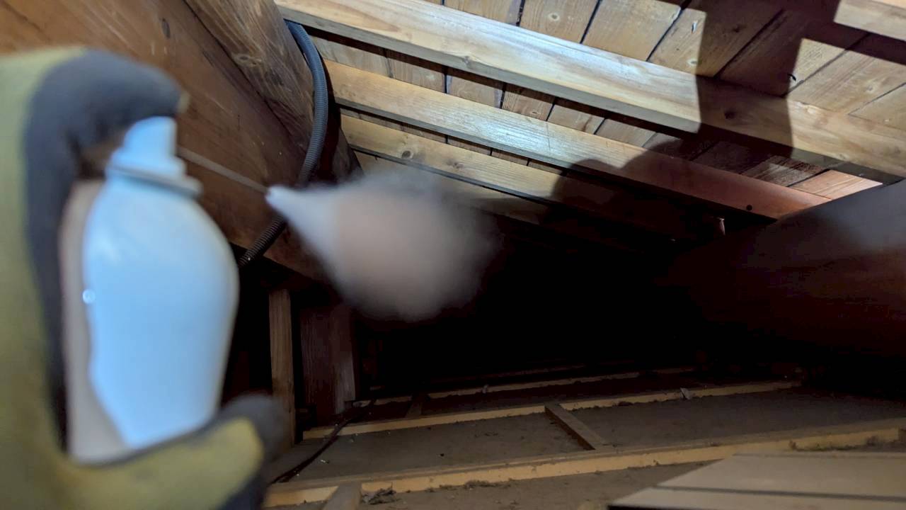 すべての侵入口を頑丈な素材で完全封鎖し、糞尿で汚染された箇所には除菌剤・消臭剤を徹底散布しました。