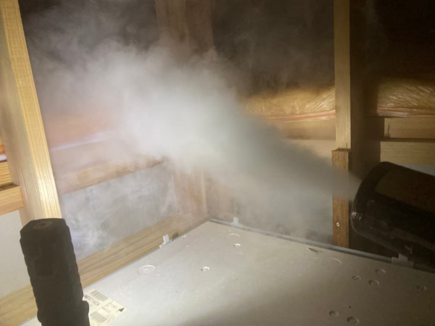 スタッフより - 今回の現場では、天井裏の複数箇所にネズミとイタチの侵入口がありました。両方が共存していたため、通常よりも臭気が強く、断熱材も大きく損傷していました。