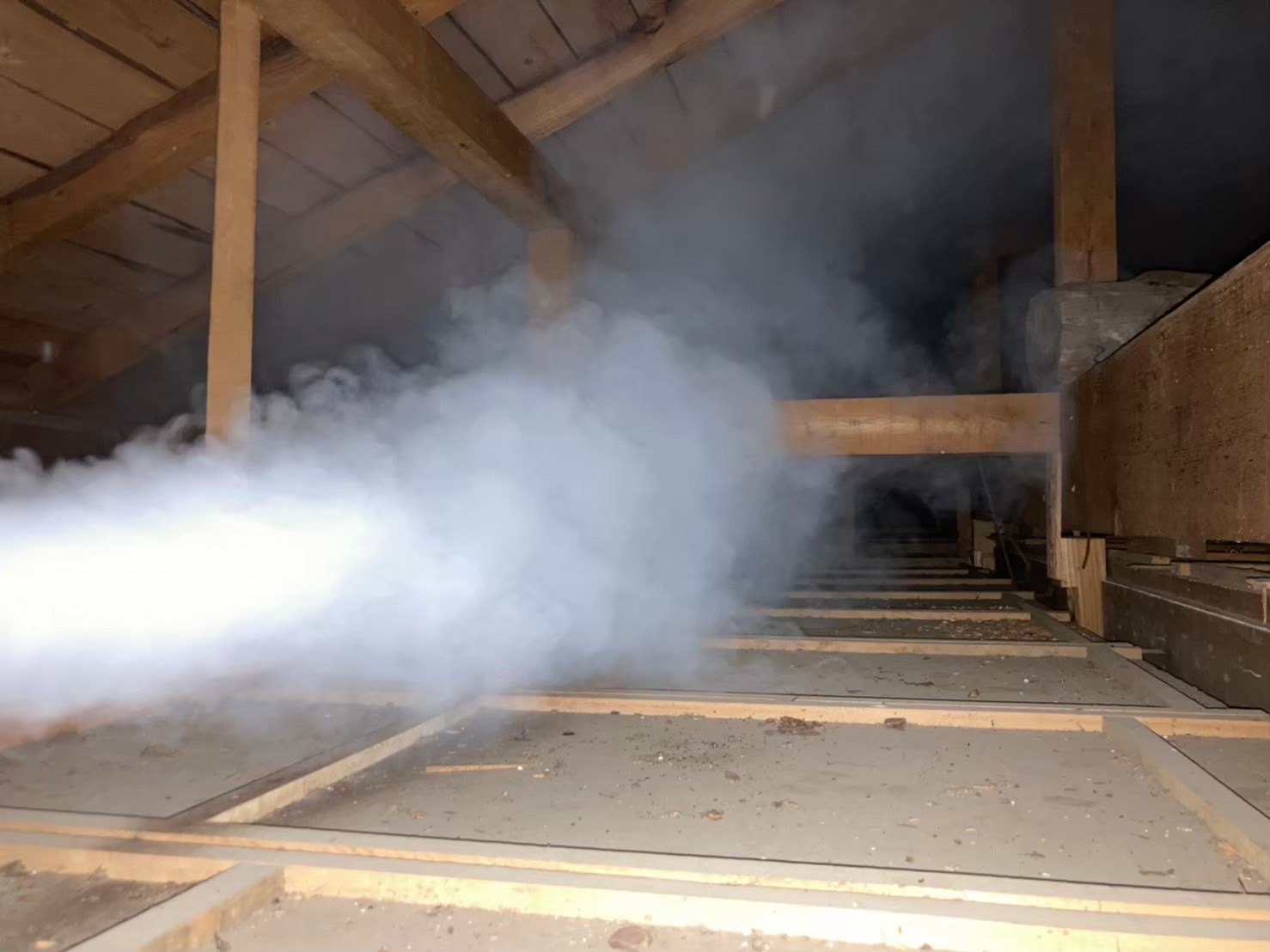 - 天井裏から夜間にカリカリと音がするとのご相談をいただき、調査を実施しました。点検の結果、屋根裏にネズミおよびイタチの通り道と糞尿跡が多数確認されました。断熱材の破損や汚染も見られ、臭気が居住空間にまで届いている状態でした。