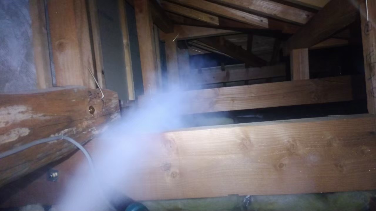 天井裏・屋根裏の追い出し作業(忌避剤散布)