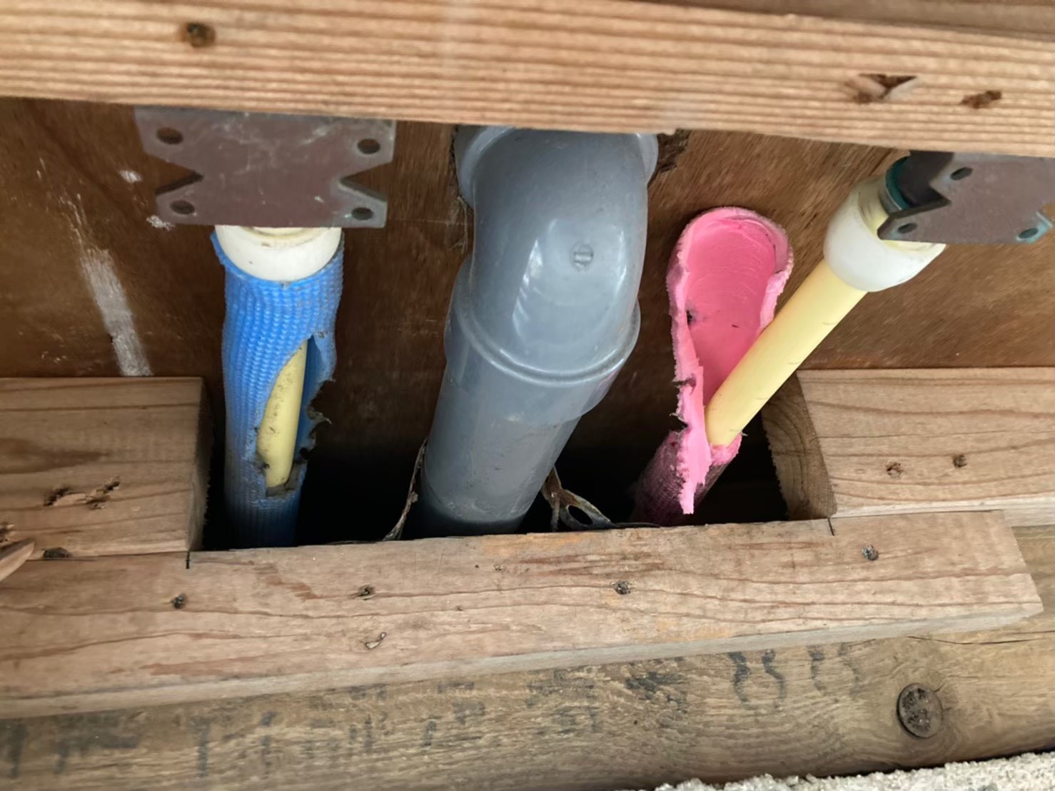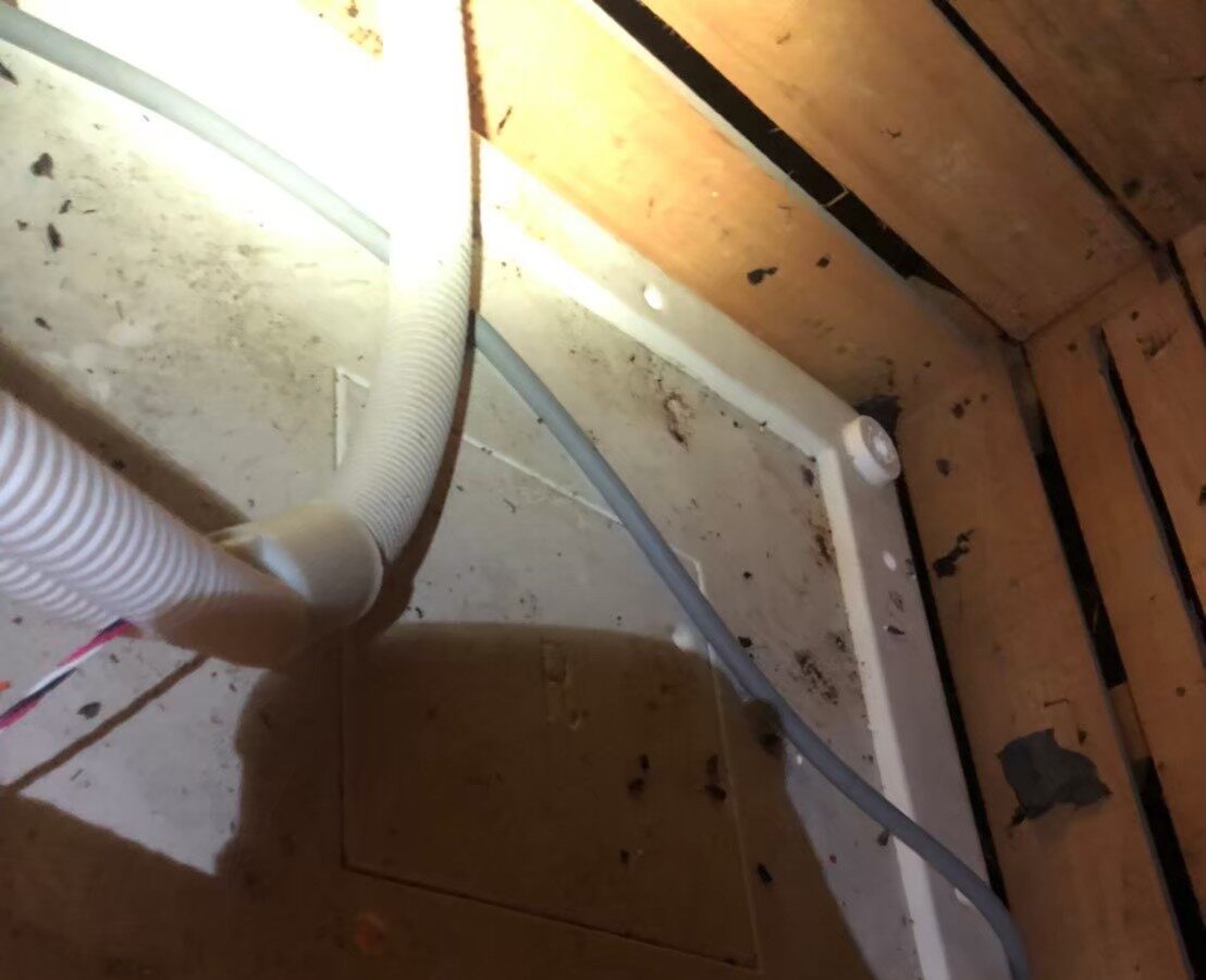 - お客様から「夜になると天井裏でカサカサと音がする」「台所まわりに小さなフンが落ちている」とのご相談をいただきました。現地を確認したところ、天井裏に複数のフンと齧られた断熱材があり、壁内配線まわりに侵入経路が確認されました。