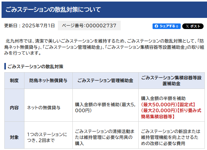 北九州市では、カラスによる被害に対応するためのいくつかの公的サービスを提供しています。