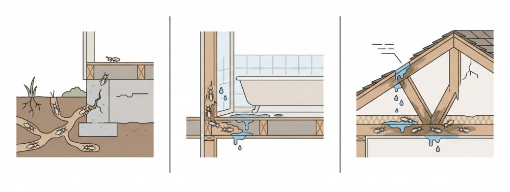 シロアリの主な侵入経路